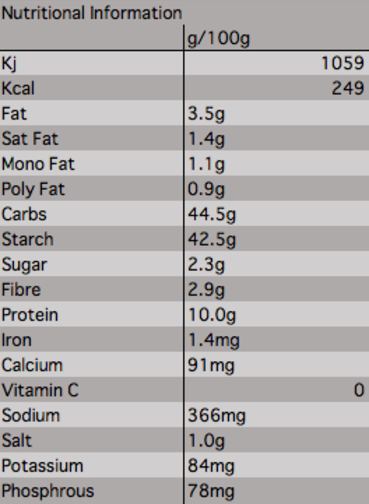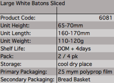 Wheat flour (with Calcium,Iron, Niacin,Thiamin) Water, Rapeseed/Palm fats and oils, Yeast, Salt, Dextrose, Emulsifiers: E481; E471, Full fat Soya flour, Preservative E282, Flour treatment agents: E300; E516.
